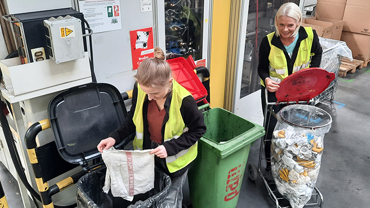 Trelleborg prioriterar effektiv kommunikation med sina anställda. Information om avfallshantering visas på TV-skärmar i hela anläggningen och införlivas i medarbetarnas utbildningsprogram. Dessutom har Trelleborg infört transparenta påsar för insamling av oljeförorenat avfall. Denna enkla men effektiva åtgärd möjliggör enkel visuell verifiering och säkerställer att korrekt avfall kasseras i motsvarande avfallsbehållare. Genom att främja transparens uppmuntrar Trelleborg en ansvarstagande arbetskultur och underlättar korrekt avfallshantering.