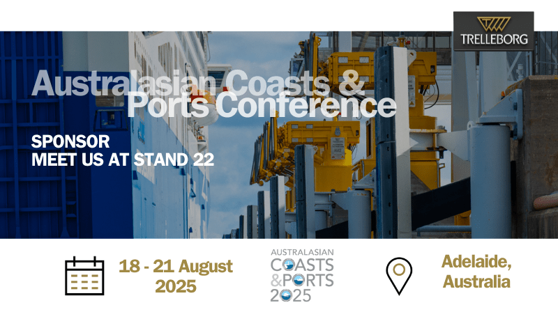 Trelleborg Marine and Infrastructure joins as sponsors of the Australasian Coasts & Ports Conference 2025, running August 18-21 at the Adelaide Convention Centre in Adelaide, South Australia. Under the theme "Navigating the Future – Climate Ready Coasts and Ports," this conference brings together specialists to explore solutions for Australia's evolving maritime challenges.