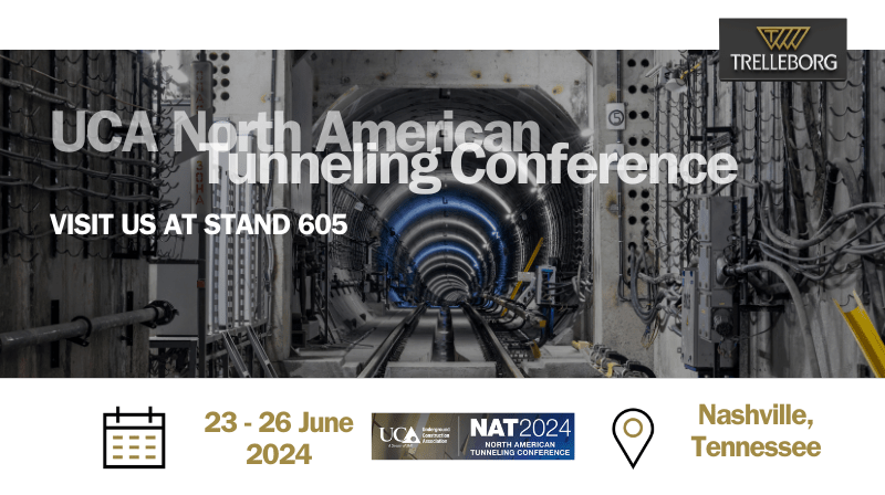 We are delighted to announce that Trelleborg Marine and Infrastructure will be attending the North American Tunneling (NAT)2024 Conference from June 23-26 in Nashville, Tennessee! Visit us at Stand #605 at the Gaylord Opryland Resort & Convention Center to discover our advanced portfolio of sealing systems for tunneling and underground construction. As a global leader, Trelleborg's sealing systems have been key in ensuring the integrity of vital infrastructure around the world. Our sealing systems boast a 120-year proven lifespan, making them among the most reliable solutions in the industry.