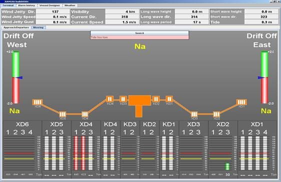 Real-time readings of the load on mooring lines