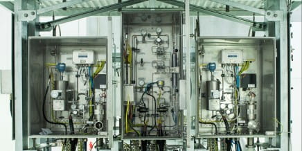 The Synertec LNG custody transfer system is a skid mounted module suitable for all LNG applications including low-pressure shipboard and floating LNG installations (FSRU).